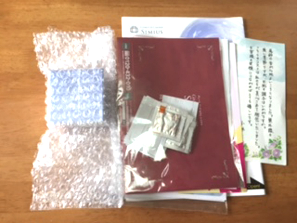 中を見ると、メビウス製薬の説明やパンフレットやお手入れガイドなども入っていました。