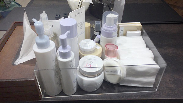 店員さんに新商品の日焼け止め製品であるUVエッセンス/美白UVスプレー/UVカットパウダー(上記画像のピンク色の製品)などの話を聞いたり、店内の写真を撮らせてもらったりと20分くらい滞在し、お店をあとにしました。