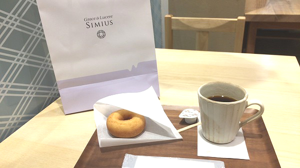 帰りにOPA2の2階にある「久世福茶寮」という和カフェでコーヒーと豆腐ドーナツをいただきました。