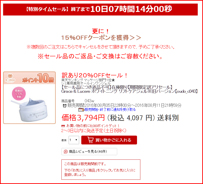 シミウス ホワイトニングリフトケアジェルが楽天で売っていない?