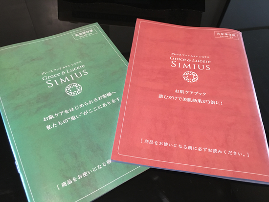 これは結構厚みのある冊子で、シミウスについて色々な商品の紹介や一つ一つのケア方法、肌についての細かい気遣いの説明が載っています。