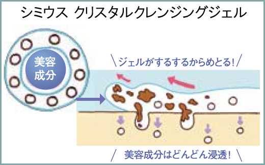ジェルが美容成分を包む形の2層構造になっていて、汚れを絡め取りつつ美容成分がお肌に浸透していきます。