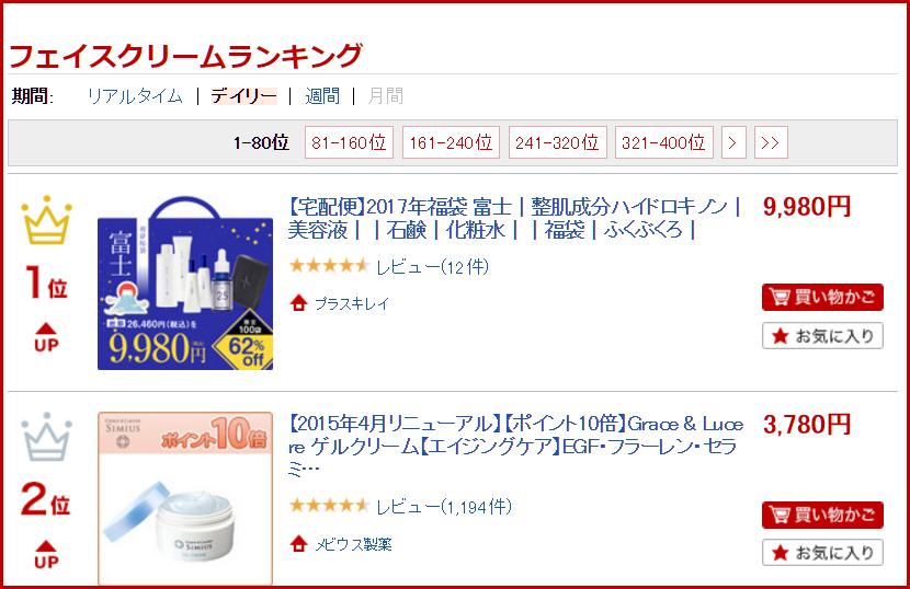 ※2016年12月に確認すると楽天のフェイスクリームランキングで2位でした。