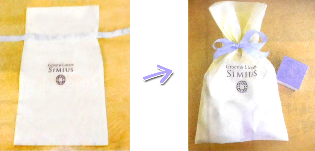 メビウス製薬のシミウスシリーズを買う時に、「プレゼント希望」や「ラッピング袋希望」とお伝えすると、こんな素敵なラッピング袋が無料でもらえます♪