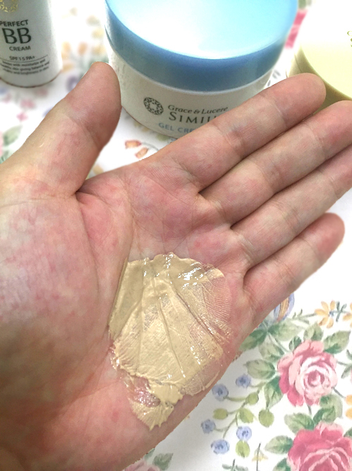 まずBBクリームとゲルクリームを適量混ぜ、好みの柔らかさのBBクリームを作ります。