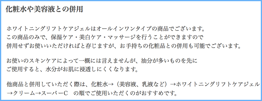 ホワイトニングリフトケアジェル・スーパーC・ゲルクリーム・BBジェルの違いは?