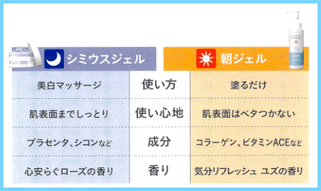 シミウス朝ジェルと、普通のシミウスジェルの違い。