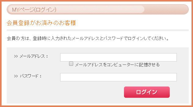 きれい定期便に申込んで会員登録した時に設定したメールアドレスとパスワードを入力します。