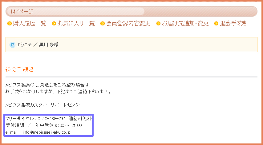 解約について、メビウス製薬のお問い合わせページには以下の表記がありますね。
