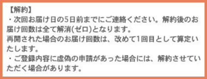 解約する場合は次回のお届け日の5日前までに連絡すると良いとのことでした。