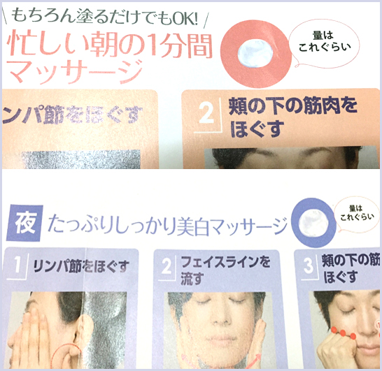 こちらはある程度のパターン化されたマッサージ方法はシミウスと一緒に入ってくるお手入れガイドに載っています。