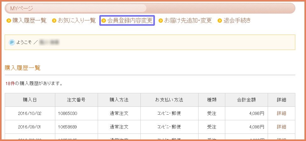 「会員登録内容変更」をクリックします。