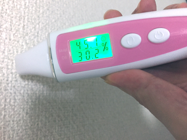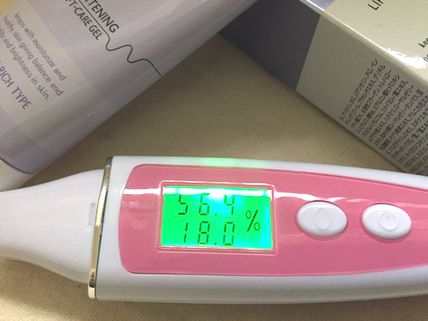 顔を洗ったあとに計測したので水分量が多いのは当然だと思いますが毎日せっせとシミウスジェルでお手入れしてきたおかげもあると信じたいです。